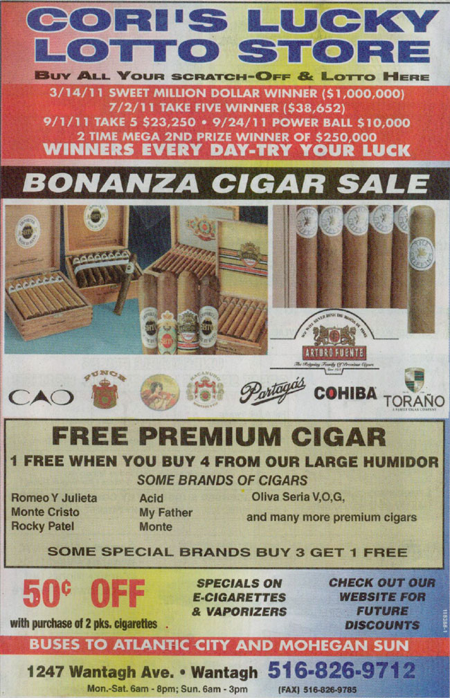 Cori's Lucky Lotto Store 1247 Wantagh Avenue Wantagh, NY 11793 (516) 826-9712